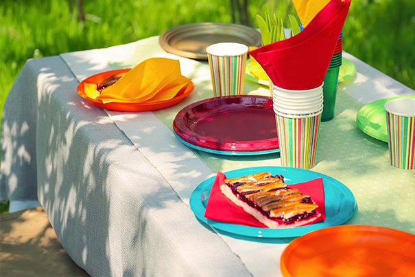 Manteles de plástico desechables utilizados para mesas de interior y exterior por restaurantes, empresas de catering y consumidores finales.